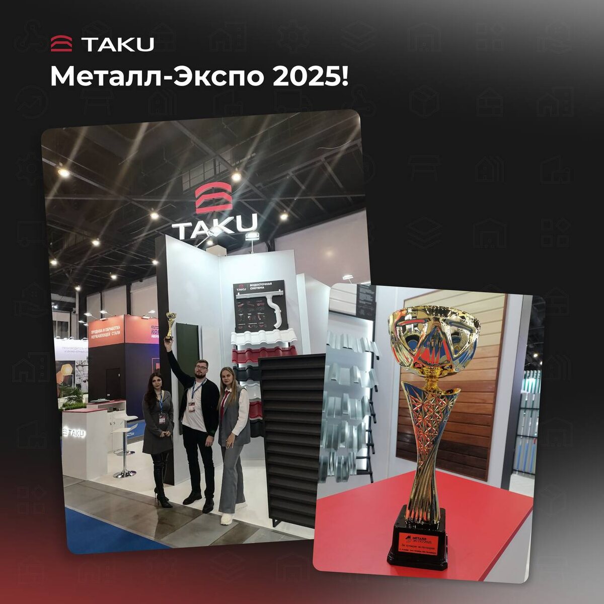 🔥🔥 Итоги участия TAKU в выставке «Металл-Экспо 2025»! Дорогие друзья, сегодня завершилась международная выставка «Металл-Экспо 2025», которая прошла в Санкт-Петербурге и объединила ведущих представителей металлургической отрасли. Ключевые результаты участия: 🔹 Провели более 20 переговоров с девелоперами, подрядными организациями и дистрибьюторами. 🔹 Представили премиальные покрытия, профили высокого качества для разных задач и лимитированные предложения. 🔹 Продемонстрировали преимущества нашего производства: — высокоточная геометрия профиля; — усиленный контроль качества; — современное оборудование. 🏆 Помимо этого наша команда получила кубок за лучшую экспозицию выставки! Это заслуженное признание, которое отмечает профессионализм и высокий уровень подготовки! 💪🏻 Поучаствовав в крупной выставке, мы подтвердили статус производителя, который предлагает не просто материалы для строительства и монтажа, а инженерно выверенные, надёжные и долговечные решения для строительства. ⚡️