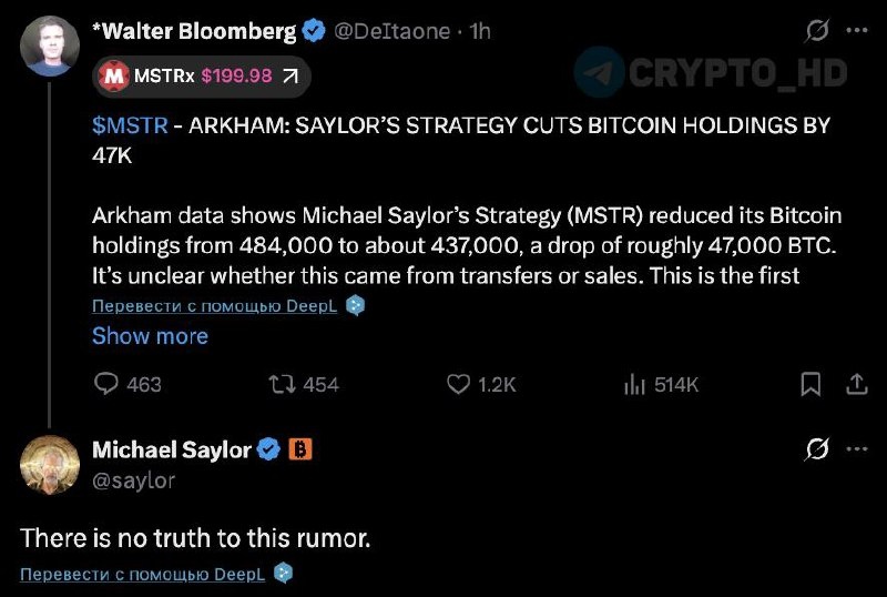 😐 Майкл Сэйлор опроверг слухи о продаже BTC (twitter