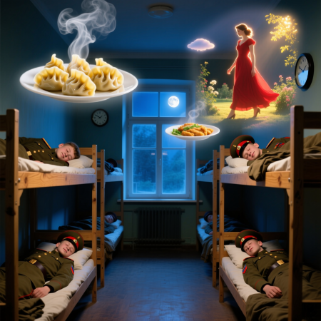 Первый курс военного политического училища — это не столько обучение, сколько переплавка. Тело, ещё вчера привыкшее к гражданским вольностям и материнским обедам, теперь каждый день проходит через кузню: марш-броски на рассвете, строевая стойка под палящим солнцем, наряды вне очереди за неуместную улыбку или нечищеные сапоги. Мозоли на пятках — не недостаток обуви, а знак отличия новобранца. Они чешутся, жгут, но молча терпят — как и положено будущему политработнику: боль — терпима, слабость — недопустима. В столовой царит особая экономика выживания. Хлеб — валюта. Не роскошь, а стратегический запас. Карманы надёжно набиты чёрствыми ломтями: на ночь, на случай голода между ужином и… ну, по крайней мере, до утра. Иногда, кажется, что желудок забыл, как выглядит что-то, кроме каши и приправы к ней. А сны? Сны компенсируют всё. Там — бесконечные столы с дымящимися пирогами, бабушкины борщи и… да, иногда — размытые, будто сквозь туман, образы обнажённых женщин. Не с пошлостью, нет — скорее