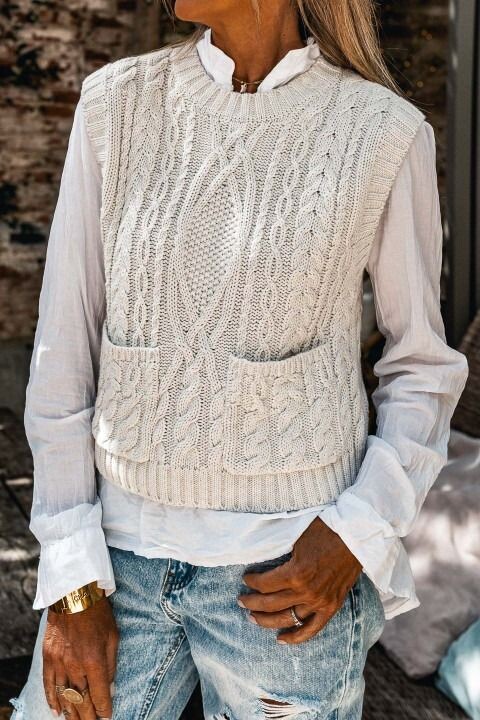 Вязаные жилеты с узорами косами — бьют рекорды популярности: модели, идеи