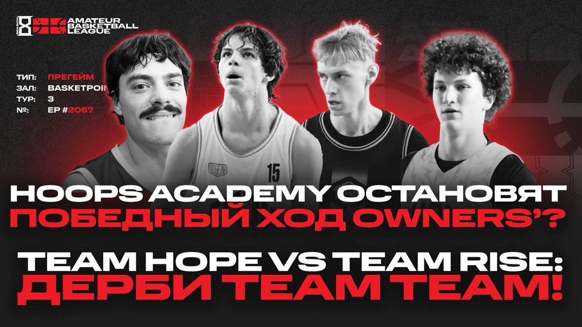 ПРЕГЕЙМ - BASKETPOINT - 3 тур (2057 выпуск) 🤔Hoops Academy остановят победный ход Owners’? 😎Team Hope vs Team Rise: дерби Team Team! 20:00 📱Ссылка 1️⃣@ABL Moscow