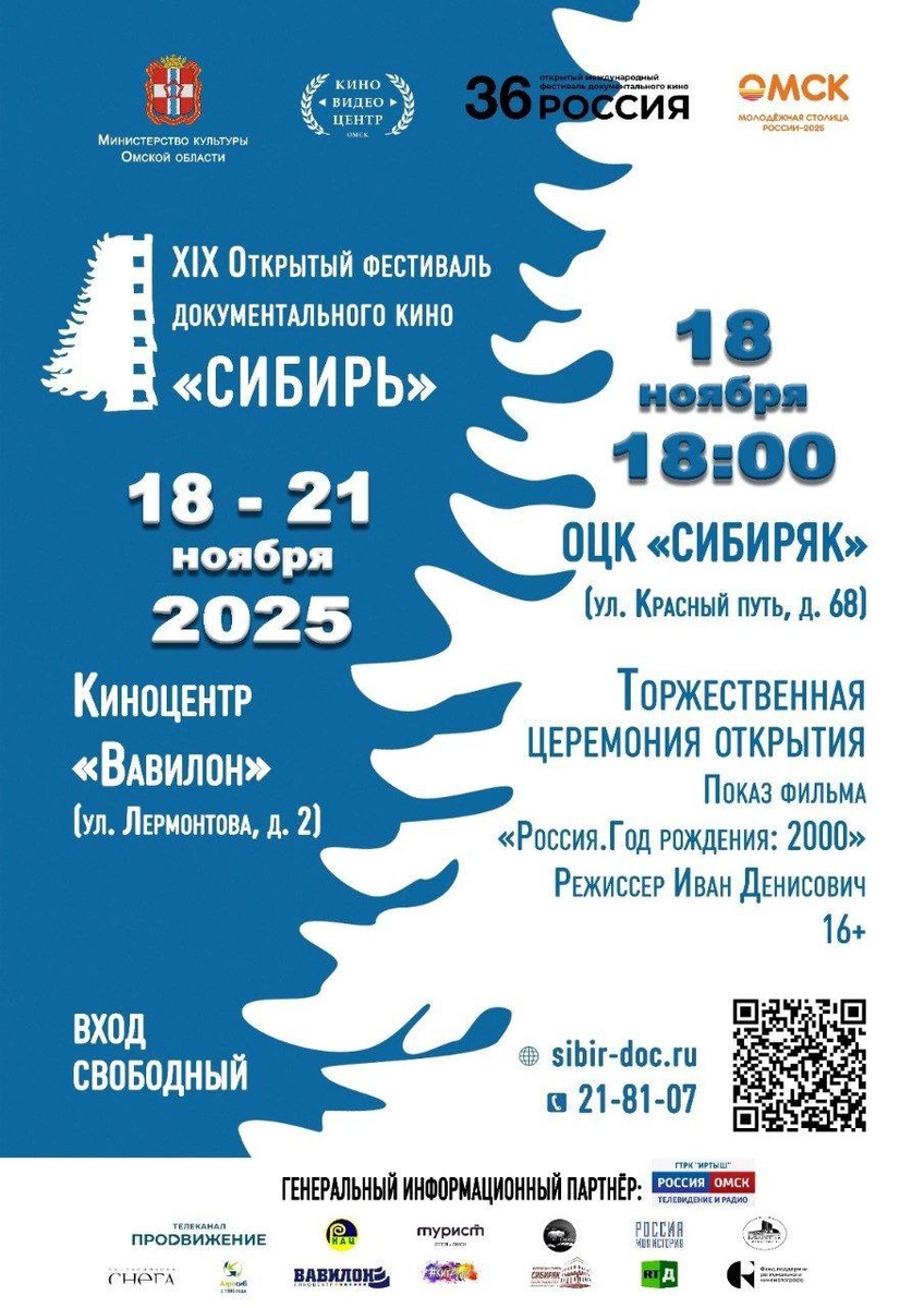 Омск на четыре дня станет центром российского кино XIX Открытый фестиваль документального кино «Сибирь» пройдет в Омской области с 18 по 21 ноября под слоганом «Документальное кино – свидетельство времени». О программе и площадках фестиваля в рамках пресс-конференции в Доме журналистов рассказал директор «Киновидеоцентра» Сергей Фамильцев. В программе фестиваля «Сибирь» омичи увидят 42 картины, которые затрагивают разные темы, в том числе и молодежные, но в приоритете всегда остаются вечные ценности — мужество и гражданственность, служение Отечеству, созидательный труд, крепкая семья, сохранение исторической памяти и преемственности поколений, картины, призывающие к милосердию, состраданию и личной ответственности за окружающий мир. Церемония открытия фестиваля состоится 18 ноября в 18.00 в Областном центре культуры «Сибиряк». Фильмом открытия станет документальная лента режиссера Ивана Денисовича «Россия. Год рождения: 2000» (16+). Финальным станет показ документального фильма «Зап