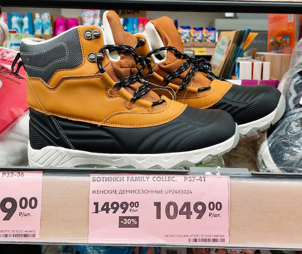 Посмотрите, сегодня в "Чижике" хорошая скидка на отличные Ботинки женские демисезонные, р37-41, на флисе. Состав: 70% полиуретан, 30% текстиль. Китай. Новая цена 1049 рублей вместо 1499. Кому то повезет выгодно сэкономить.