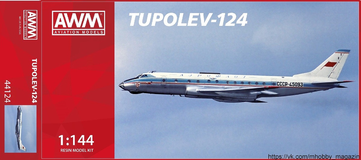 AWM из Москвы выпустила модель Ту-124 в масштабе 1/144 из полиуретановой смолы: