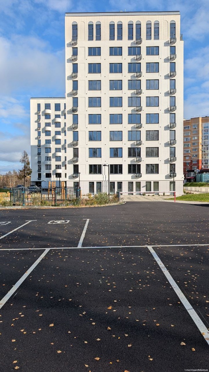 ЖК Эльта. Елец прекрасен и радует, что там появляются достойные новостройки. Достаточно значимое архитектурное событие для города. Люблю когда на цокольном этаже плитка, это красиво и практично (вспоминаем советские панельки), даже скруглили углы на входе у подъездов. Красивая сетка окон и балконов (интересно как их будут эксплуатировать\стеклить). Ну и конечно не хватает взрослого озеленения, всё очень голое. Архитектура — Megabudka 📱 Архитекстура #ЖК #Елец