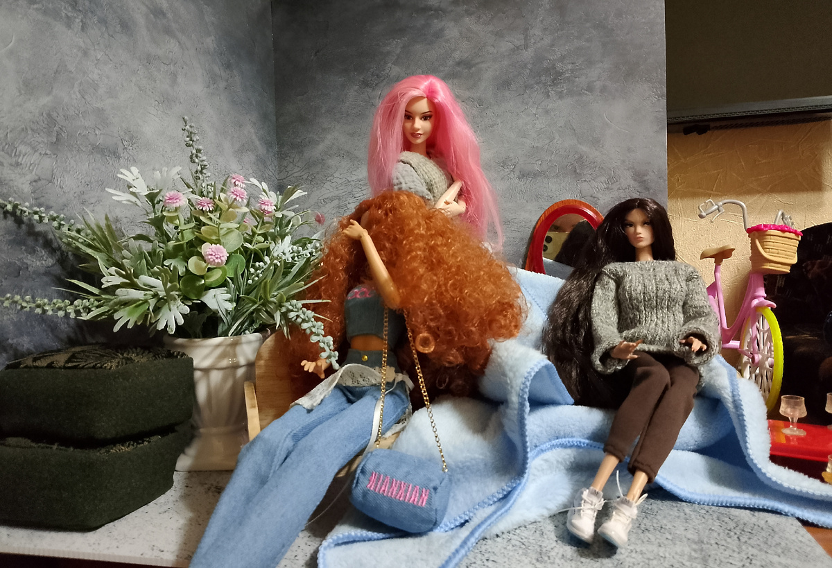 Начало можно почитать здесь: Продолжение здесь: Обратно в город приехали в пятницу утром и сразу на работу. Войцеха и Мэримура просидели весь день в рюкзаке, а когда наконец я добралась до дома, то Мурик тихонько убежала в свой уголок, а вот Войцеха 🤔 хм, я ничего не поняла))) Как думаете, что происходит на куклополке? Войцеха задирается или наоборот, веселит публику? Ну, Дагмара сидит с каменным лицом, её не прошибëшь😀 А Ульрика – она плачет или смеётся? Очень интересно послушать вас, кому как кажется😊 А может, Войцеха что-то рассказывает? Или хвастается? 😉 P.S. Раньше Войцеха ни с Ульрикой, ни с Дагмарой не дружила. Да и сейчас особо тëплых чувств не наблюдаю.