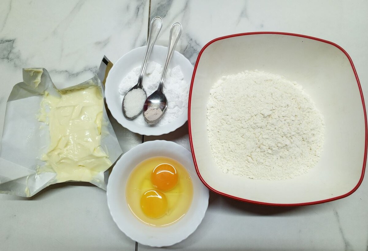 Разнообразное Рождественское печенье действительно можно приготовить из одного основного теста. В этом я убедилась лично. Преимущества этого рецепта: Рецепт подразумевает использование 1 кг сливочного масла для 10-ти противней 10-ти видов печенья. Я же решила приготовить 3 вида и 3 противня печенья из 1-ой пачки масла весом 175 г. Поэтому укажу здесь рецептуру на 1-ну пачку масла, а в конце статьи Вы найдете ссылку на видео, в нем указано количество ингредиентов для теста из расчета на 1 кг сливочного масла. Итак, все продукты для теста должны быть комнатной температуры: Замес основного теста: в миске смешать яйца, соль, сахарную пудру, добавить размягченное сливочное масло и муку с ванилином, все перемешать. Лучше всего это делать в перчатках. Разделить тесто на три равные части. Сугробы Припылить стол мукой и выложить 1 часть теста. Из теста сформировать шарики и выложить на противень, застеленный пергаментом для выпечки, на расстоянии. Выпекать при 200°С в течение 10-12 минут (ор