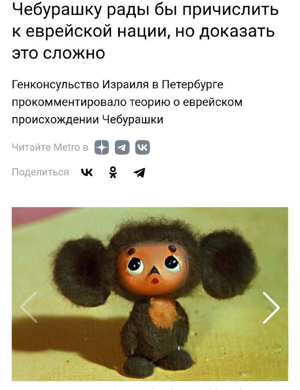 Чебурашку предлагают официально проверить на наличие обрезания, прежде чем записывать его в евреи Такую позицию озвучили в генконсульстве Израиля в Санкт-Петербурге. Вот это поворот 🙁 Когда думаешь, что абсурда больше не будет — он всегда находит, чем удивить. Подробнее: https://hard-tm.su/threads/127646/ 🕹HARD-TM — Подписаться