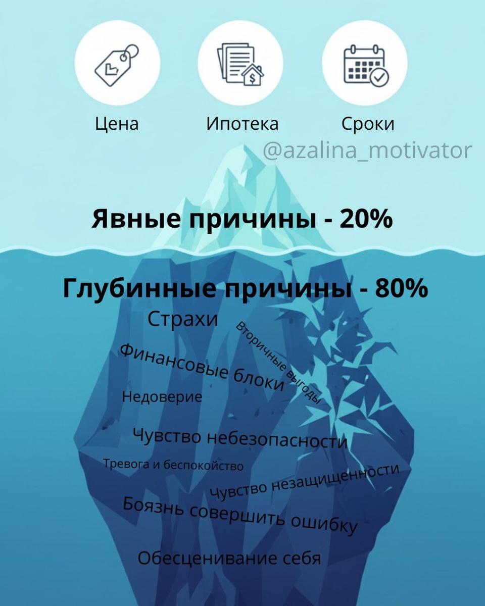 РИЭЛТОРАМ, БРОКЕРАМ, ФИНАНСОВЫМ КОНСУЛЬТАНТАМ Почему сделки ваших клиентов «зависают» и как это быстрее и легче изменить 80% «зависших» сделок упираются не только в цену или ипотеку. Настоящая причина глубже — это подсознательные ограничивающие программы ваших клиентов (и иногда ваши собственные). Я помогаю выявить глубинные ПРИЧИНЫ-ОГРАНИЧЕНИЯ, что мешает: ✅Вам иметь МНОГО КЛИЕНТОВ. ✅Вашему клиенту ПРОДАТЬ КВАРТИРУ. ✅Вашему клиенту СГЕНЕРИРОВАТЬ ДЕНЬГИ на покупку. В чем корень проблем? Нарушенное чувство безопасности, защищенности, страхи, недоверие, неуверенность, обесценивание себя, непозволение, непринятие, вторичные выгоды, проблемы в отношениях, финансовые блоки. Это одни из причин, что мешают клиенту продать/купить недвижимость, принять решение, а вам — стабильно закрывать сделки и расти в доходе. ✅Пример кейса: «Риелтор А. не могла 4 месяца продать 3-комн. квартиру. После одной сессии с продавцом, где мы выявили его скрытую эмоциональную связь с недвижимостью, на следу
