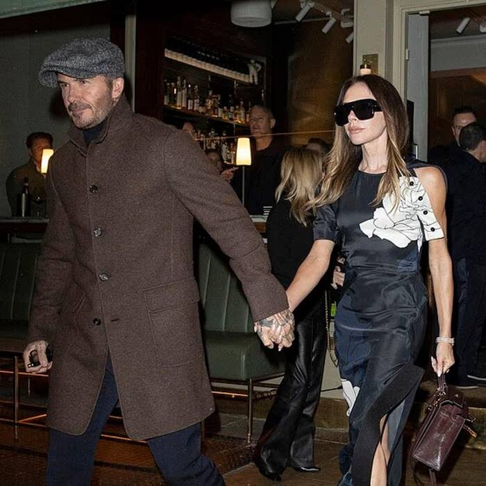 Викторию и Дэвида Бекхэм снова поймали папарацци. Звездная чета ужинала в фешенебельном мишленовском ресторане, что находится на западе Лондона. И с кем же они проводили вечер? Их компания была весьма примечательной: рядом с Бекхэмами сидели их давние приятели — канадский миллионер Джейми Солтер и его жена Шерил. Солтер, к слову, не просто богач, а владелец и генеральный директор крупной компании по управлению брендами в США. Видимо, обсуждали новые деловые перспективы. По информации Daily Mail, скромный ужин обошелся друзьям ни много ни мало, а в 32 тысячи рублей. Дэвид, бывший футболист «Манчестер Юнайтед» и сборной Англии, выбрал для выхода свое любимое шерстяное пальто шоколадного цвета и, конечно же, фирменную кепку. А 51-летняя Виктория? Она выглядела, как всегда, безупречно. На Виктории было элегантное черное шелковое платье с цветочным узором и смелым разрезом. Туфли на высоком каблуке и солнцезащитные очки завершали образ. Что она хотела скрыть за темными стеклами в помещении?
