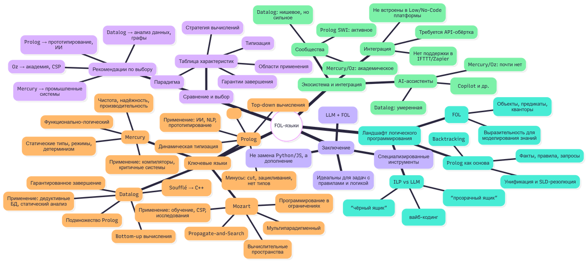 Datalog: Экосистема здорова в своих нишах. Репозиторий awesome-datalog является хорошим каталогом ресурсов и реализаций. Высокопроизводительные реализации, такие как Soufflé (изначально разработанный в Oracle Labs, теперь с открытым исходным кодом), активно развиваются и используются в академических и промышленных кругах. Реализации для баз данных, такие как Datomic и Datascript, имеют сильные связи с сообществом Clojure.