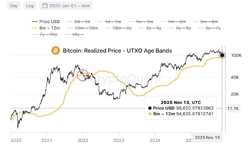 Биткоин у критического уровня $94,000 📉⚡️ Биткоин сейчас торгуется около $94,000-$97,000 — это средняя цена покупки краткосрочных инвесторов за последние 6-12 месяцев. По данным CryptoQuant, этот уровень является "безубытком" для многих держателей. JPMorgan подтверждает важность отметки $94,000 как ключевой поддержки. Если цена упадет ниже, может начаться настоящий медвежий тренд. Пока что рынок находится в пределах коррекции после достижения $120,000. При этом банк сохраняет оптимистичный прогноз до $170,000 в ближайшие 6-12 месяцев. #новости #БезПафосаФинансы #биткоин #криптовалюты