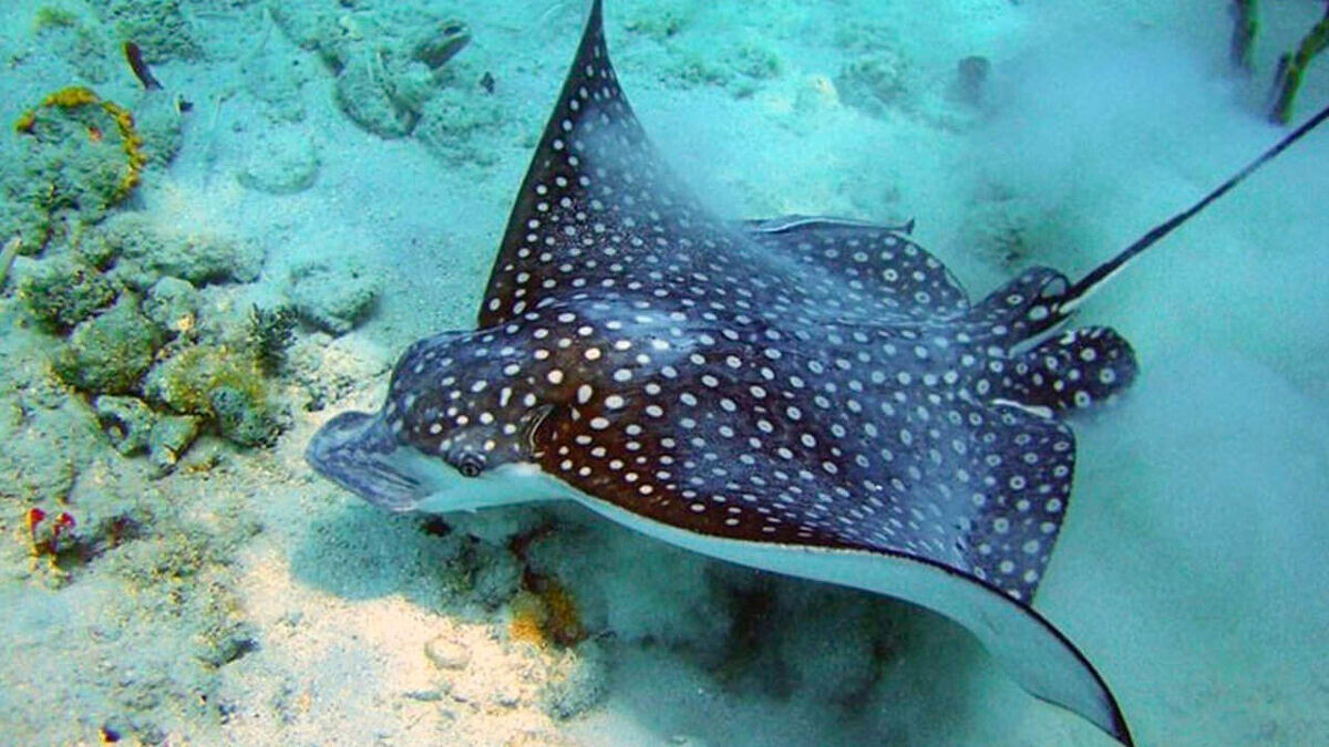 Пятнистый орляк, также известный как пятнистый скат или орляк обыкновенный (лат. Myliobatis aquila), – это одна из самых узнаваемых и распространенных хрящевых рыб в наших водах. Его характерная форма и пятнистый окрас делают его легко отличимым от других морских обитателей. Давайте погрузимся в полное описание этого удивительного существа и узнаем, где его можно встретить. Внешний вид: Грация и мощь Пятнистый орляк – это крупная рыба, которая может достигать внушительных размеров. Вот основные черты его внешности: Образ жизни и поведение: Мастер подводного мира Пятнистый орляк – это активный хищник, который проводит большую часть своей жизни в движении. Ареал обитания: От теплых вод до умеренных широт Пятнистый орляк – это обитатель восточной части Атлантического океана. Его ареал простирается от: Орляк предпочитает прибрежные воды, но может заходить и на более значительные глубины, до 200 метров. Он часто встречается в районах с песчаным или илистым дном, где обитает его основная