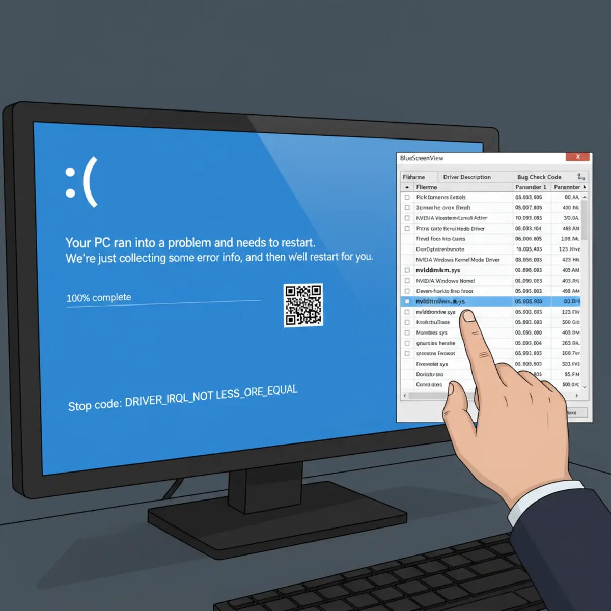 BlueScreenView помогает быстро понять причину «синего экрана смерти» (BSOD) — читает MiniDump-файлы и показывает виновные драйверы и коды ошибок, не требуя глубоких знаний от пользователя. Скачайте и распакуйте программу с официального источника или с проверенной карточки. Запустите BlueScreenView от имени пользователя с правами администратора, чтобы приложение могло прочитать системные дампы. BlueScreenView — быстрый способ увидеть, какие драйверы или модули были задействованы в BSOD. Для дальнейшей диагностики используйте WhoCrashed или WinDbg, а в простых случаях достаточно обновления проблемного драйвера или удаления конфликтного ПО.