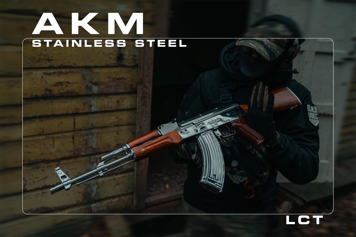 Есть вещи, которые не нуждаются в представлении. Их узнают по силуэту, по характеру, по истории. АКМ — один из них. Но что если сделать его необычным, эксклюзивным, притягивающим взгляд? Подумали LCT и выпустили все тот же, знакомый всем, АКМ, но с хромированным корпусом. Этот кастом от LCT — однозначно не для всех. Да и в реальной жизни такой Калаш вряд ли встретишь, но кто запрещает использовать такую яркую реплику в страйкболе? Правда с таким приводом в лесу не побегаешь, он очень быстро истратит свой первоначальны блеск (хотя и не потеряет в ТТХ). А вот для коллекционеров или для любителей ролевок — в самый раз. Особенно какому-нибудь Барону Картеля. Мы между собой называем его «мажорный АКМ», и коротко и суть отражает великолепно. Как и у всей последней ревизии LCT — внутри установлен гирбокс ver.3 с быстросьемной пружиной, роторный хоп-ап и Т-коннектор. Автомат спокойно выдает 130-140 м/с «из коробки» и в принципе не нуждается в тюнинге. Опять же, мы бы не рисковали использовать