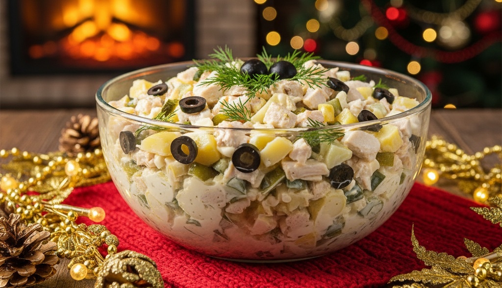 В преддверии Нового года хозяйки ищут новые идеи для праздничного меню. Мы предлагаем оригинальный вариант салата, который заменит привычное Оливье и точно понравится гостям. Узнайте, как приготовить необычное блюдо и что не стоит ставить на стол в 2026 году. С каждым годом традиционный салат Оливье все чаще уступает место новым кулинарным экспериментам. Многие хозяйки устали от привычного вкуса и стремятся удивить гостей чем-то необычным. В этом году на смену классике приходит оригинальный рецепт, который способен стать настоящим хитом праздничного стола. Для приготовления потребуется жареное куриное филе, щедро приправленное специями, три яйца, картофель и морковь, а также консервированные оливки, свежий зеленый лук и маринованные огурцы. Все ингредиенты нарезаются небольшими кубиками или колечками, смешиваются и заправляются майонезом. Такой салат получается ярким, с интересным вкусом и аппетитным внешним видом. Процесс несложный: куриное филе обжаривается до золотистой корочки, зат