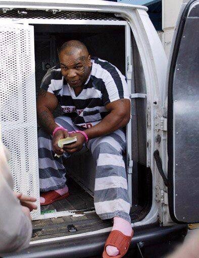 Майк Тайсон в гламурных розовых наручниках залетел в тюрьму за хранение наркотиков и вождение в нетрезвом состоянии, 2008 год