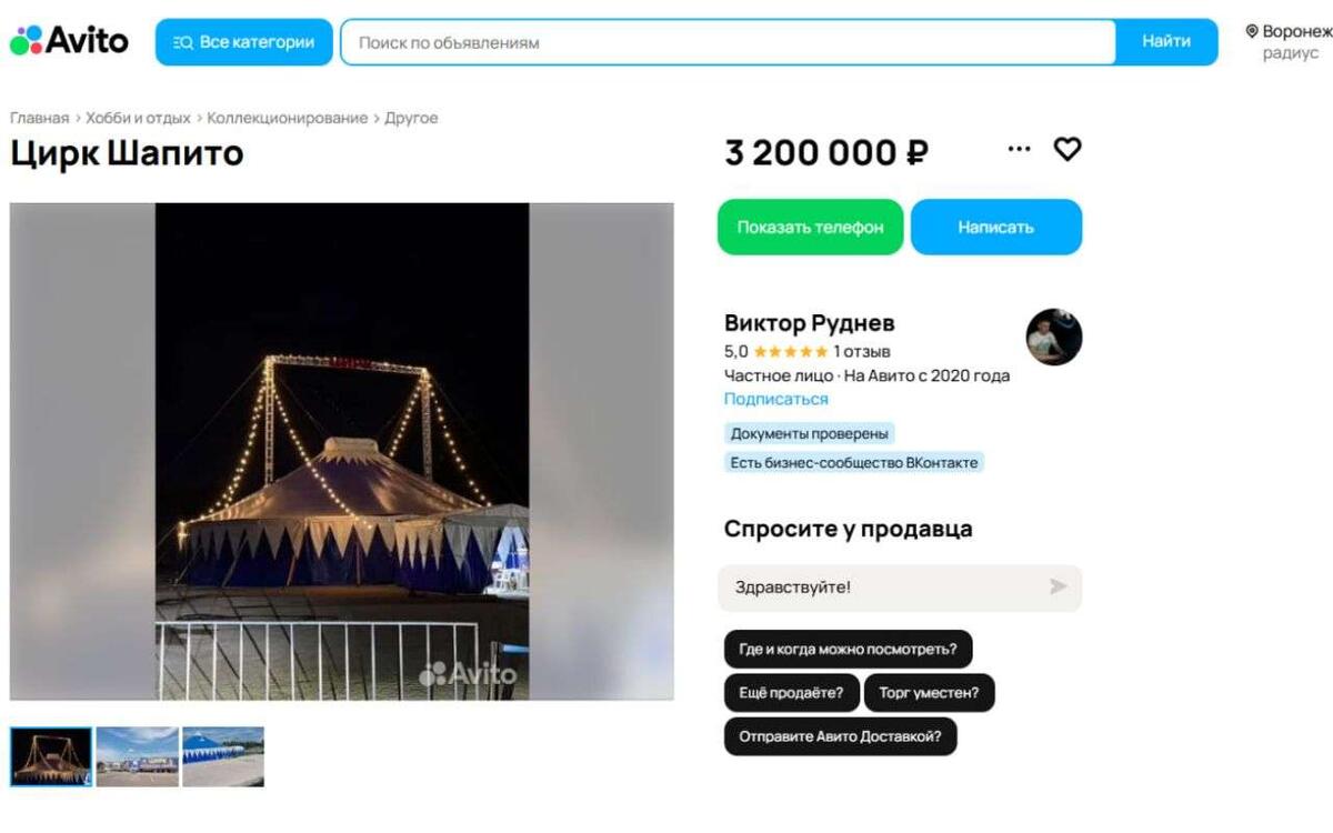 За 3,2 млн продают передвижной цирк-шапито в Воронеже