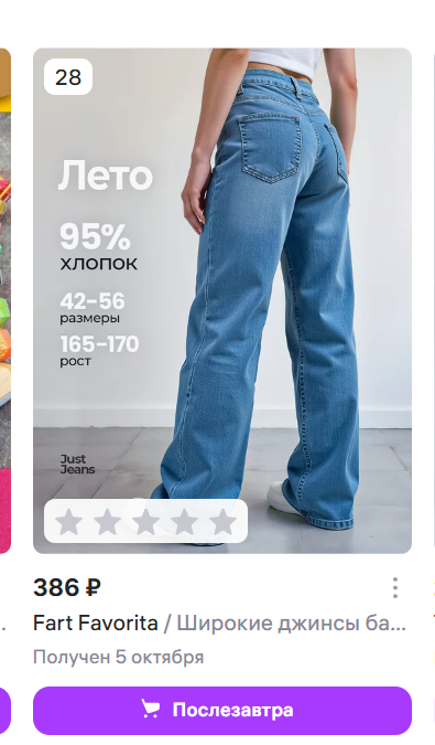 Я решила, как в старые добрые времена, провести снова фотосессию и продемонстрировать вам свой роскошный наряд))) Фото много, так что готовьтесь! А вместе с фото и история о том, как я купила джинсы за 300 рублей с дыркой в неудачном месте. Я же немного шопоголик, самую малость, но я выгодный шопоголик. В секонде давно уже не была, теперь покоряю просторы ВБ. Наш Wildberries кишит всякими предложениями, как выгодными, так и нет. Порой просматриваю ленту, смотрю, вдруг чего там полезного и интересного попадётся, и ведь попадается! Я как раз хотела обновить джинсы, мне в последнее время нравятся такие широкие, просторные. Они и удобные, и как-то даже талию подчёркивают... У меня есть несколько штук с крупными карманами, а тут захотелось классические, чтобы и в пир, и в мир, и с топом, и с изящной блузкой... Искала я разные варианты, рассчитала за несколько тысяч купить, так как переплачивать не хотела, но тут мне вдруг повезло! Попались джинсы за 300 рублей. Если быть точнее, то за 386,