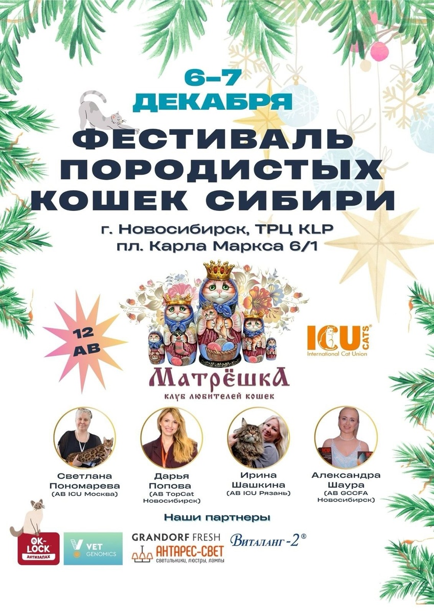⏰ 6 - 7 дек (22д) 🏛 #Новосибирск #Россия #Выставка 😽 Выставка кошек и котов: Фестиваль породистых кошек 🏆 International Cat Union 🏆 Matryoshka Cat Club Контакты и вопросы организаторам здесь: 🌐 https://www.sunny-cat.ru/vystavki-koshek.php?mesto=43-novosibirsk Дорогие заводчики и участники наших выставок! Регистрацию на выставку 6-7 декабря официально объявляем открытой 🫶 Вас ждёт: 12 АВ рингов + монопородные ринги, конгресс Чемпионов + различные шоу Возможность закрыть сразу 3 титула за два дня выставки 🧑 👨 Эксперты: 🟣 Пономарева Светлана (AB ICU) 🟣 Шашкина Ирина (AB ICU) 🟣 Шаура Александра (AB GCCFA) 🟣 Попова Дарья (АВ TOPCAT)