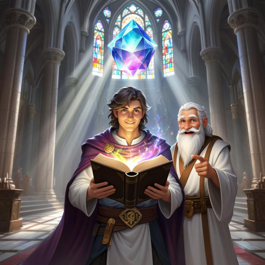 Эртас вновь оказался в центре большого зала, заполненного светом и спокойствием. Перед ним возвышался огромный кристаллический куб, источающий мягкое свечение. Это был Храм Безмолвия, святилище мудрости и покоя. "Здесь хранится Древняя Книга," произнёс тихий голос позади него. Обернувшись, он увидел фигуру старца, одетого в белые одеяния. Старец улыбнулся и указал на книгу, стоящую на пьедестале. "Твоя судьба лежит здесь," продолжил старец. "Открой книгу и узнаешь правду." Эртас осторожно открыл книгу. Страницы начали переливаться разноцветными оттенками, вызывая чувство восторга и трепета. Из страниц возникли образы и звуки, рассказывающие историю мироздания. Первая страница повествовала о Семи Путях к Блаженству – этапах духовного роста, ведущих к освобождению от страдания. Вторая – о Двенадцати причинах перерождения и повторяющегося круговорота жизни и смерти. Каждая страница раскрывала новую грань понимания. Эртас узнал, что Вселенная находится в постоянном движении, переходя из