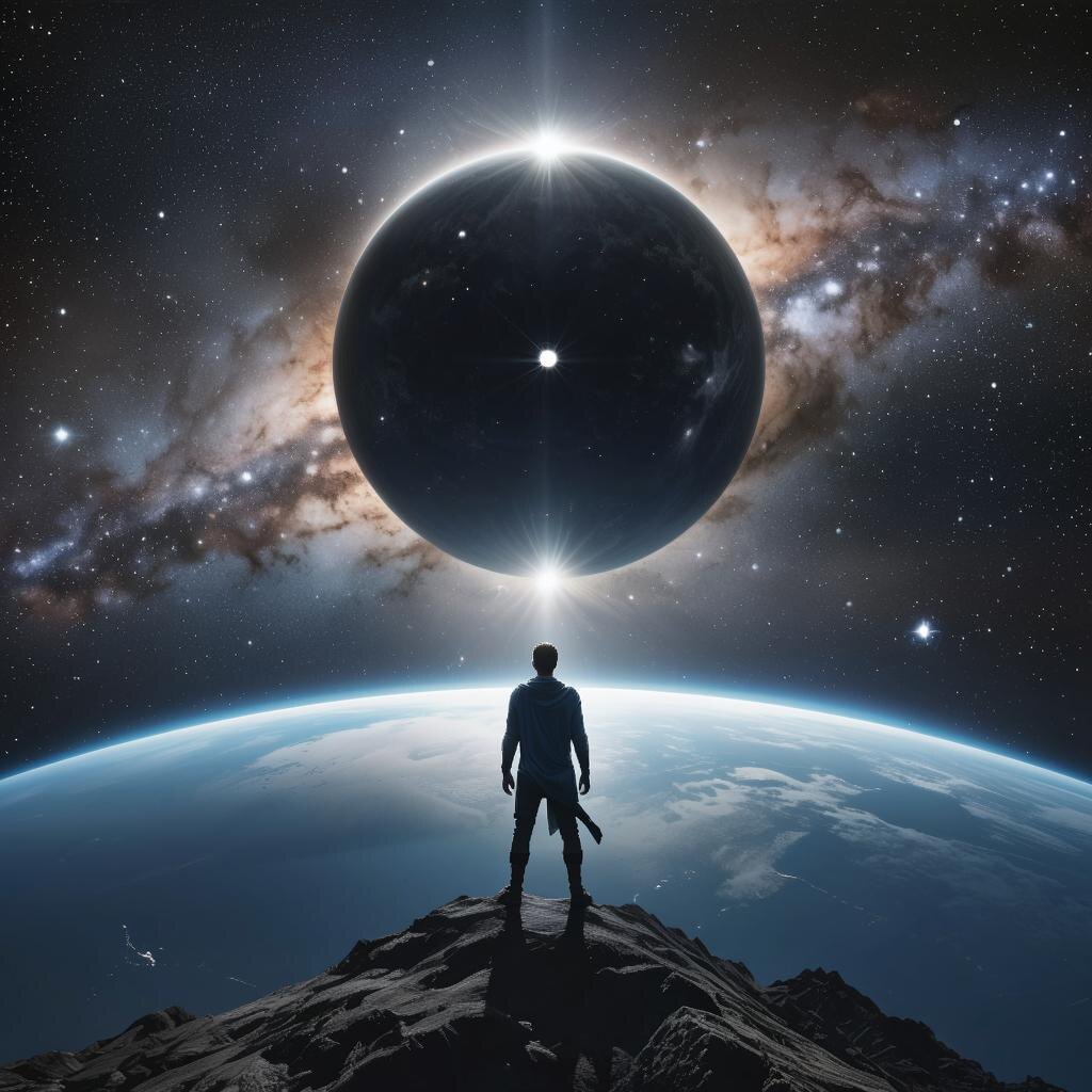 Эртас сидел на вершине горы, уставившись вдаль. Перед ним расстилалось бескрайнее небо, полное звёзд и планет. Он долго размышлял над прочитанным в Древней Книге, пытаясь понять смысл полученных знаний. "Вселенная – это танец света и тьмы," говорил внутренний голос. "Всё начинается и заканчивается в бесконечном цикле рождения и смерти." Да, он понял многое, но оставался один важный вопрос: какова природа этой тьмы, из которой возникает свет? Откуда берётся энергия, создающая жизнь и поддерживающая её развитие? Эртас решил отправиться вглубь галактики, туда, где находилась легендарная Черная Звезда – центр Вселенной, из которого начинался цикл возрождения. Он слышал, что там хранятся ответы на многие вопросы, касающиеся природы творения. Черная Звезда оказалась массивным телом, поглощающим свет и энергию окружающих объектов. Казалось, она представляла собой абсолютную тьму, поглощающую всё вокруг. "Здесь источник всего," понял Эртас. "Она поглощает старую энергию, перерабатывая её в но