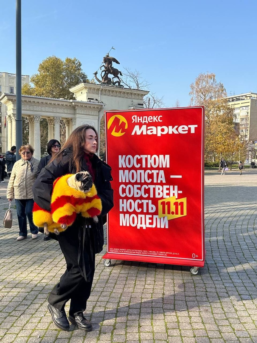 В Краснодаре Яндекс Маркет устроил уличный фэшн-перформанс — модели в осенних луках вышли прямо из наружки на главную улицу города. Главной звездой дефиле стал мопс Келли в шубе, а всё шоу — это часть подготовки к распродаже 11.11. Оцениваем силу касания: ➕90 ньютонов за креатив и вау-эффект ➕70 ньютонов за то, что выглядит стильно ➕30 ньютонов за модного мопса ➖5 ньютонов за то, что конструкции так или иначе передвигать непросто. Немаленькие, а если колесо у кого поведет, красота колонны нарушится. Однако у ребят все выглядит офигенно! ИТОГ: наружка может не только стоять и передвигаться по дорогам. Может и по тротуарам гонять! Самая лучшая подборка кайфовых акций в tg канале За что еще добавить или отнять ньютоны? 👇