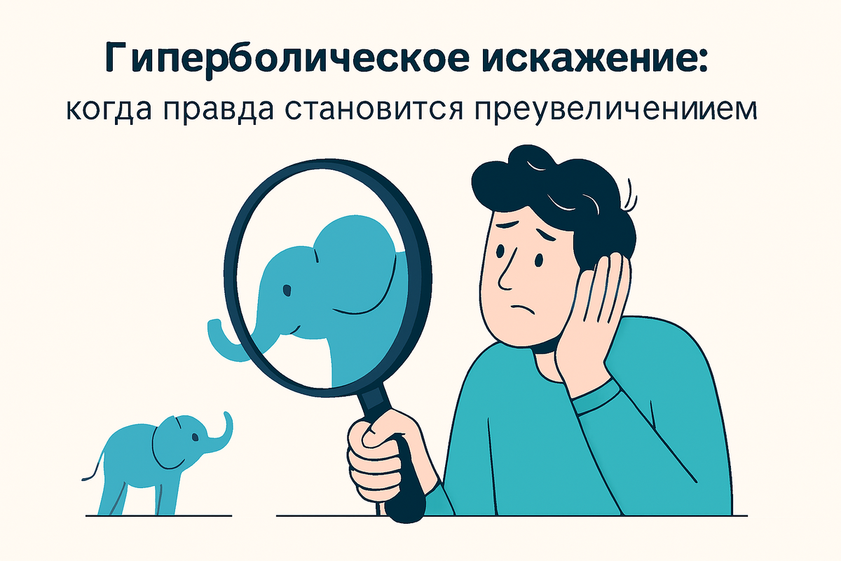 Мы часто сталкиваемся с любопытным психологическим явлением — гиперболическим искажением. Это когда правда, вроде бы простая и очевидная, вдруг превращается в преувеличение. Ситуация может быть самой обычной: друг опоздал на пятнадцать минут. В реальности — мелочь. Но в голове уже звучит: «Он всегда так делает, ему всё равно». Маленький факт раздувается до масштаба глобальной закономерности. Почему так происходит? Эмоции оказываются сильнее фактов. Когда мы злимся или обижаемся, мозг ищет подтверждения чувствам, а не истине. Преувеличение помогает сделать аргумент весомым: «Ты никогда меня не слушаешь!» звучит куда громче, чем «Иногда ты меня перебиваешь». А ещё мы любим истории — и без гиперболы они кажутся скучными. Но подвох в том, что преувеличение начинает жить своей жизнью. Оно формирует образ человека или ситуации, который уже не совпадает с реальностью. Мелкая ошибка превращается в «он всегда всё портит», один конфликт — в «у нас ужасные отношения», усталость — в «я полный неуд