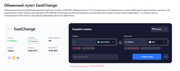 EastChange — один из самых популярных вариантов, когда пользователи ищут где обменять usdt на рубли без риска.