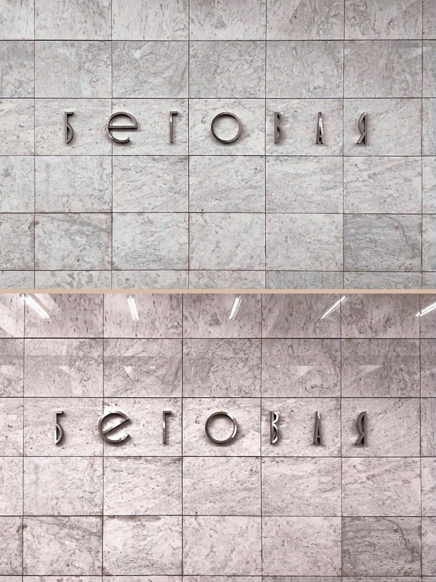 На «Беговой» вернули наклон буквы «е» Исторический наклон в названии станции снова на месте. Несколько лет «е» стояла прямо, но после обращений горожан её поставили как было изначально. Мелочь, а глазу приятнее — любите такие аккуратные правки?