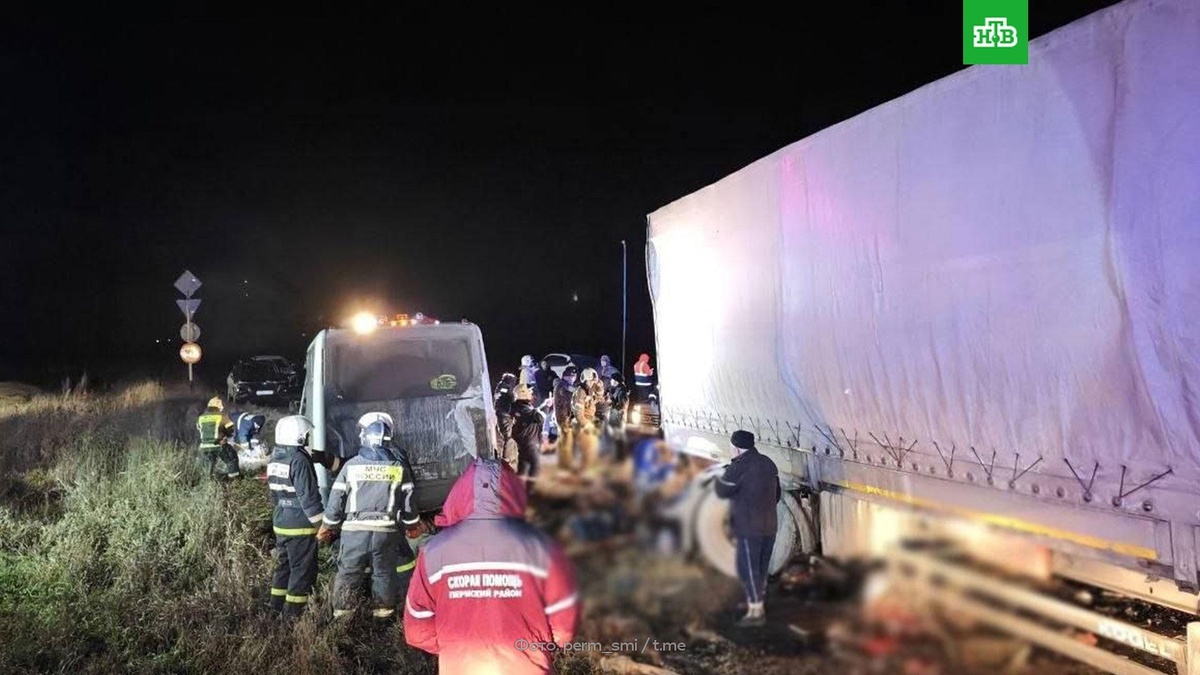 [ Смотреть видео на сайте НТВ ] Число погибших в результате ДТП в Пермском крае возросло до семи, еще 12 человек ранены. Об этом сообщили в СУ СК по региону. По последней информации, при столкновении микроавтобуса и большегруза погибли семь человек, в том числе 17-летняя девочка-подросток. Напомним, на автомобильной дороге Р-243 пассажирский микроавтобус «Соболь» выехал на встречку, где столкнулся с грузовиком. Возбуждено уголовное дело об оказании услуг, не отвечающих требованиям безопасности, повлекших по неосторожности смерть двух и более лиц. [ Смотреть видео на сайте НТВ ]