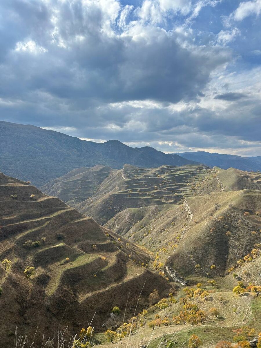 С старинном ауле Чох (Южный Дагестан)есть одно чудо, которое появилось в 7 веке д.н.э., благодаря изнурительному труду. 😓. Чохские террасы – это система рукотворных ступенчатых полей в горах Дагестана, созданная для земледелия. Плодородный слой почвы спускали с высоких гор,выравнивали и укрепляли с помощью камней. Здесь когда -то росли виноградники, цвели сады и колосились рожь и пшеница!🌾🌾🌾 Для полива использовались сложные системы каналов, дамб и акведуков. Только вдумайтесь, все это делалось руками💪👋, без использования техники!