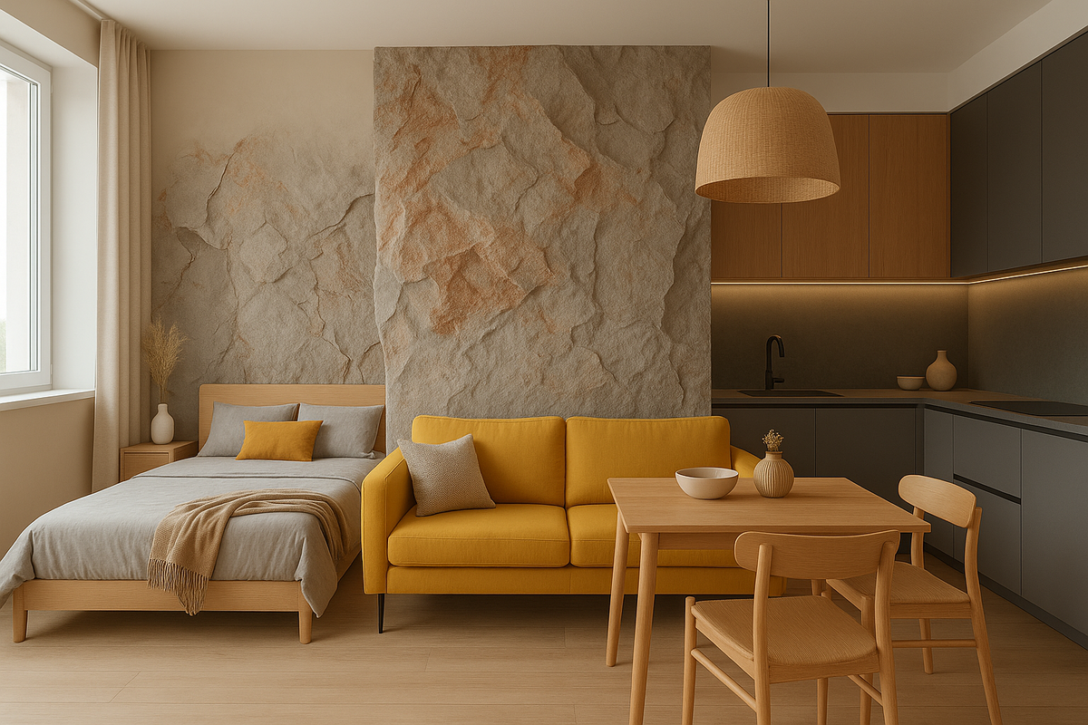 Контраст фактур — один из самых выразительных и современных приёмов зонирования. Он позволяет не просто отделить участки комнаты, но и придать глубину пространству.