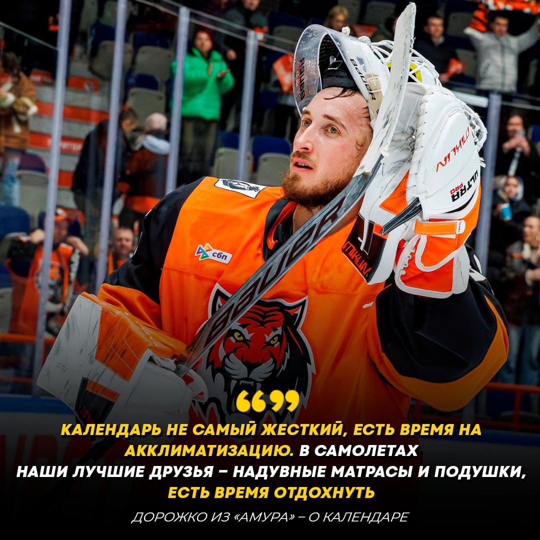 🔥🇷🇺 Вратарь «Амура» Максим Дорожко высказался о календаре КХЛ. 🥅 Голкипер рассказал, что нужно игрокам хабаровского клуба для отдыха во время долгих перелетов.