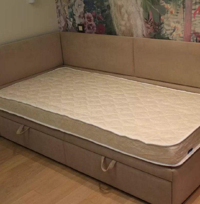 Кровать Palermo Compact для детской комнаты. Ортопедическое основание с выдвижными ящиками для удобного хранения. Матрас укладывается для экономии пространства. Ткани на выбор. Еще больше наших работ: https://disk.yandex.ru/d/BCBQnobj31Kl6Q