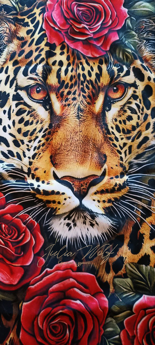 Привет, друзья! Завтра нас ждет День Рыжих Мыслей, и в преддверии этого яркого события я с гордостью представляю вам новинку! Встречайте новый платок "Леопард среди красных роз" из моей эксклюзивной коллекции "Хищники"!