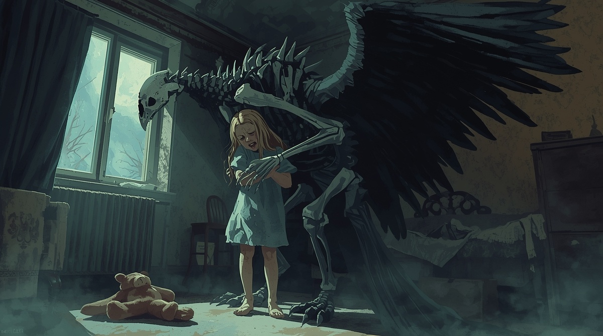 Света стояла перед той самой стеной. Обои были содраны клочьями. На штукатурке она рисовала зубной пастой. Она рисовала птиц. Огромных, с длинными шеями и слепыми глазами. А в углу, в гнезде, свитом из сорванных обоев и ее же распущенных волос, сидела та самая Птица. Она обнимала Свету крылом-костяшком, а ее клюв был прижат к виску девочки, словно шепча ей на ухо самые сладкие и самые страшные сказки.
