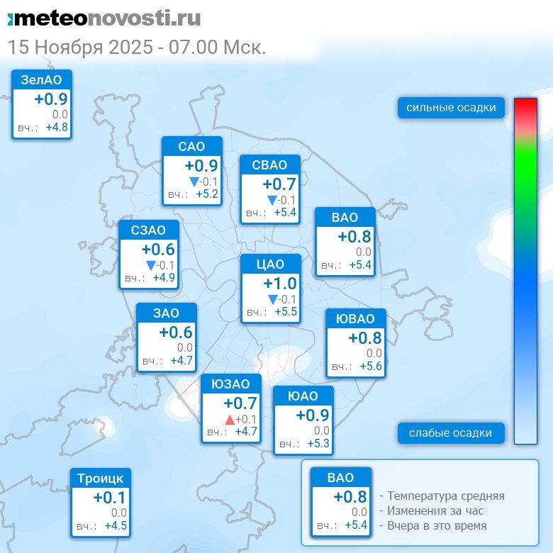 В 7:00 в Москве было от +0.1°C до +1.7°C, средняя температура +0.8°C #погода #Москва #осень #температура #15ноября #суббота Перейти на сайт Прогноз погоды на 14 дней