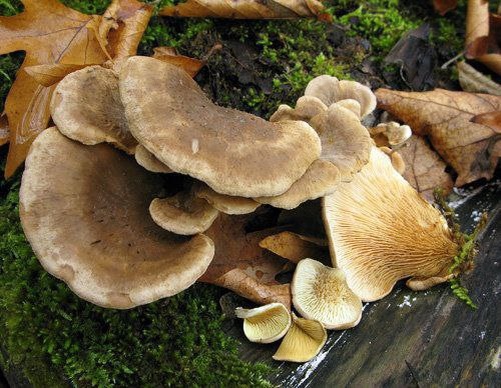 Тапинелла панусовидная она же свинушка уховидная, или подземная, или погребник В сырую погоду эти грибы можно найти на гниющей древесине. Бывает, они поселяются и в подвалах на старых брёвнах, которые, кстати, разрушают. Видимо, с этим местом обитания связано название «погребник». Вкуса тапинелла практически не имеет, запах при этом немного отдаёт хвоей, что определяется типом деревьев, на которых она обычно селится. Неприятно другое: погребник, как и свинушка тонкая, содержит всё те же лектины, разрушающие эритроциты и могущие приводить к отказу почек. Так что мы с вами всё же отнесём этот гриб к ядовитым.