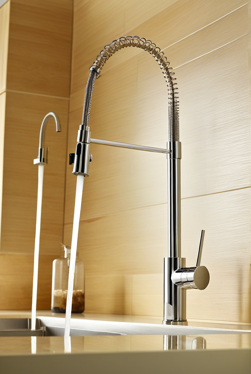 - Комбинированный смеситель два в одном: кухонный кран с двумя изливами для питьевой воды.