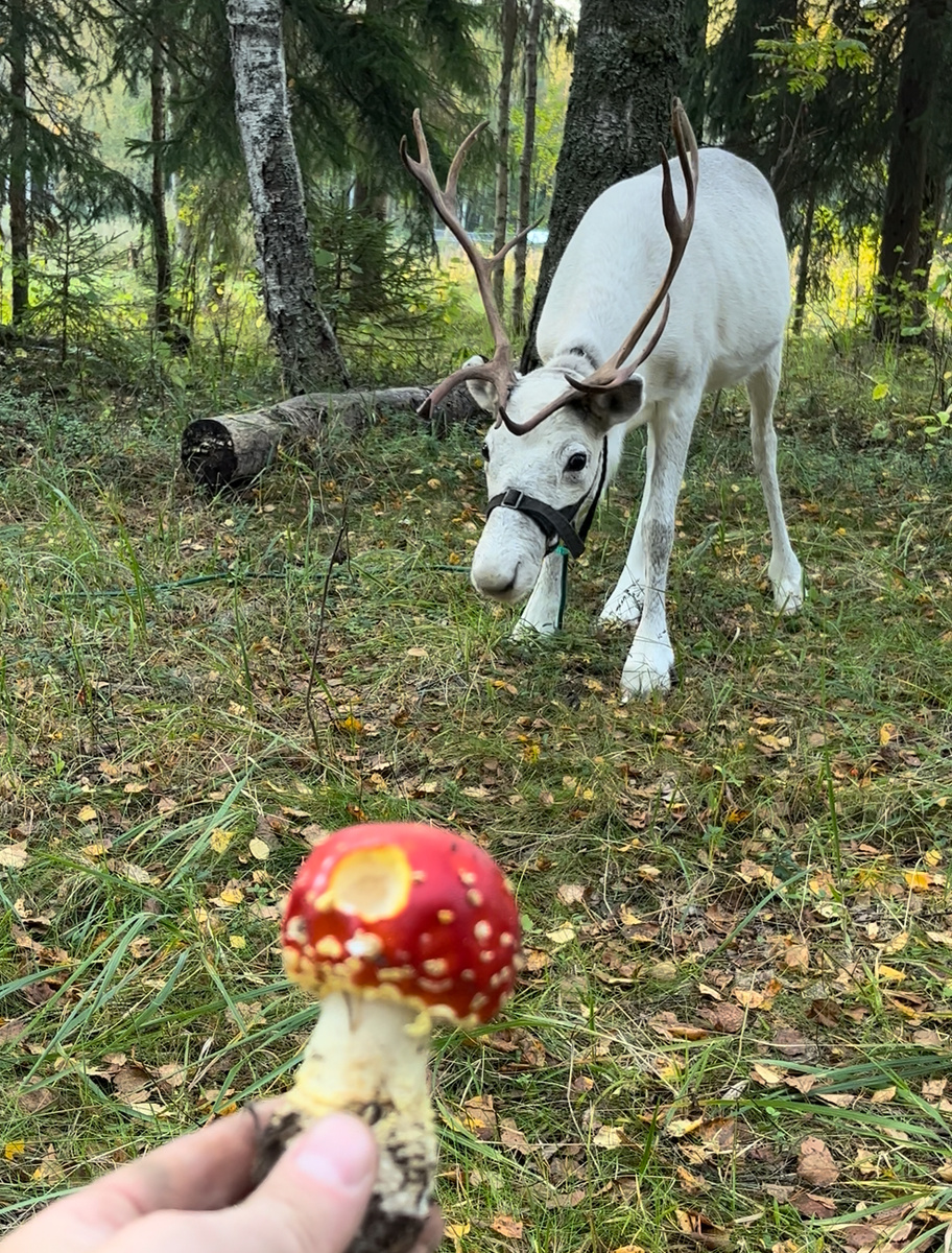 Что любят больше всего Северные Олени? В лесо-тундровой полосе, Северные олени в сезон грибов питаются в первую очередь мухоморами. Этот гриб имеет ценность для желудка тем, что очищает его. Ферменты мухомора впервую очередь, уничтожают вредоносные бактерии и микроорганизмы. Во вторых, этот гриб их «штырит». многие спросят: может ли северный олень «перебрать» с употреблением этого красивого красного в белые пятнышки гриба? Ответ очевиден, природа сделала пищеварение Северного оленя устойчивым к казалось бы очень ядовитому грибу для человека. Северные олени могут и питаются грибами мухоморами в огромных количествах без вреда для здоровья. В период с августа по конец сентября, мы в лесу собираем все грибы которые попадаются под ногами. Абсолютно без разбора. Наши Северные Олени сами выбирают из всего что собрано и кушают. По факту, Олени употребляют в пищу все грибы что им принесли. Конечно в первую очередь они кушают сначала самые вкусные по их мнению, затем менее. Друзья, если статья