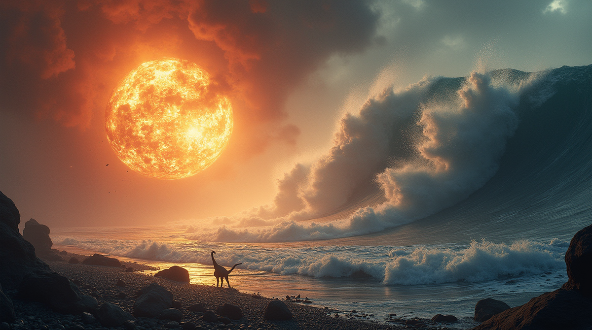 Новое исследование специалистов из Университета Мичигана показывает, что 66 миллионов лет назад Землю обрушили гигантские цунами высотой до 4,5 километра. Волны возникли после падения астероида Чикшулуб и обогнули планету за 48 часов. Астероид диаметром около 14 км врезался в Юкатан на скорости, превышающей звуковую в 35 раз — это примерно 43,5 км/с. Удар вызвал каскад катастроф: кислотные дожди, массовые пожары и волны цунами, ставшие одним из триггеров климатической катастрофы, приведшей к исчезновению динозавров. По словам исследовательницы Молли Рэндж, это цунами нарушило отложения даже в самых удалённых морских районах — в некоторых местах осадочные слои были полностью смыты или повреждены. Моделирование показало: спустя всего 2,5 минуты после удара в воздух поднялось облако пыли и сажи, а в Мексиканском заливе возникла волна высотой 4,5 км. Через некоторое время, в 220 км от удара, появилась вторая волна — около 1,5 км. Эти волны двигались по разным направлениям и через 48 часов