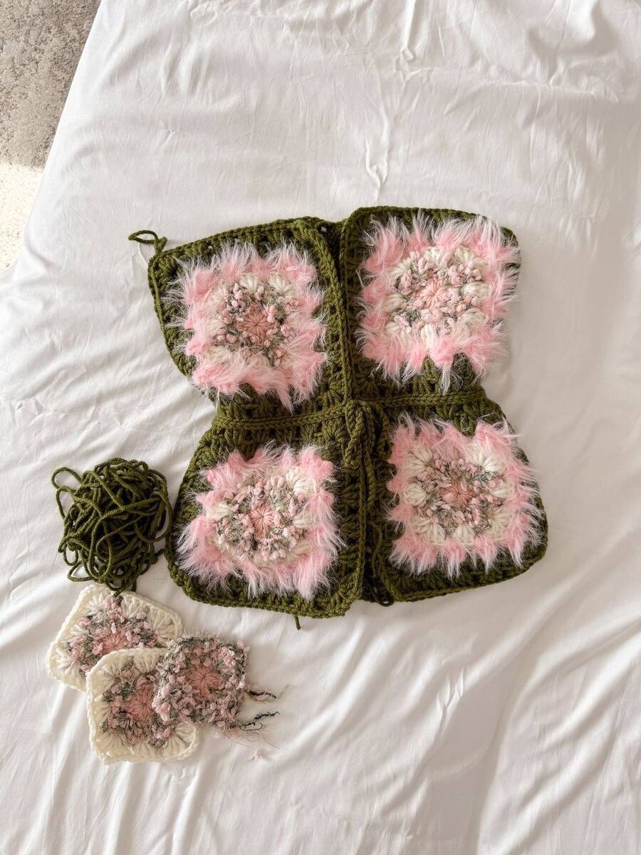 Вот такой кардиган хочу из квадратов, но не знаю где продают пряжу тут🙄