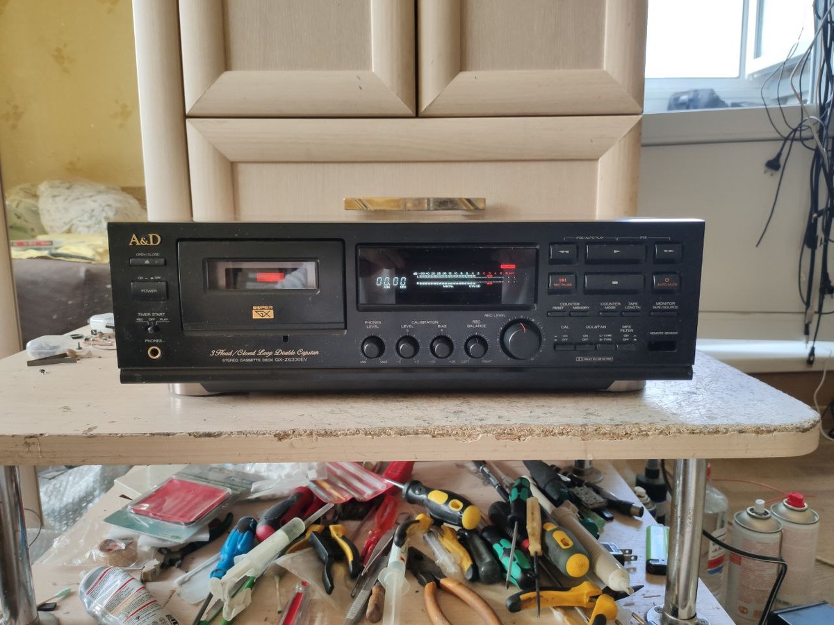 A&D GX-Z6300EV.Ещё одна, почти топовая дека или когда акай не вывозил, он звал на помощь диатон, иначе говоря, когда А и Д - сидели на маркетинговой игле.Дека то отличная и даже когда то была на обслуживании, ну и как это часто бывает, у дек с закрытым трактом, заминает 120 минутные кассеты.Левый ролик под замену, всё, укатался, меняем на китайский, с бронзовой втулкой. Ну вот, теперь не заминает, главное правильно выставить ролик по высоте, шаблончик в помощь.Ох уж эти любители, выжать из кассетного формата максимум, дека из вчерашней публикации и эта дека, обе от одного владельца и основной задачей было, что бы обе деки были настроены так, что между ними были минимальные расхождения уровней и АЧХ.Вот с этим пришлось повозиться, владельцы несколько дек, сталкиваются с расхождением уровней между аппаратами, хотя если слушать кассету на том же аппарате на котором она записана, то всё нормально. Но стоит переставить на другой аппарат, всё, уровни сразу "разбегаются", а ещё хуже если и вы