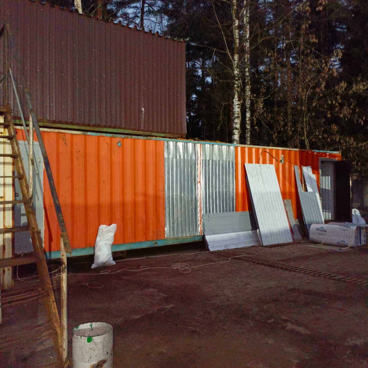 Первый ярус - морской контейнер длиной 12 м. В контейнере необходимо отремонтировать внутрянку и сделать перепланировку, зонировав пространство на котельную, раздевалки, душевую и туалет. Перенести двери в новые места, заглушить окно и три других переустановить. В туалет сделать отдельный вход. Сантехника, канализация, тоже на нас.