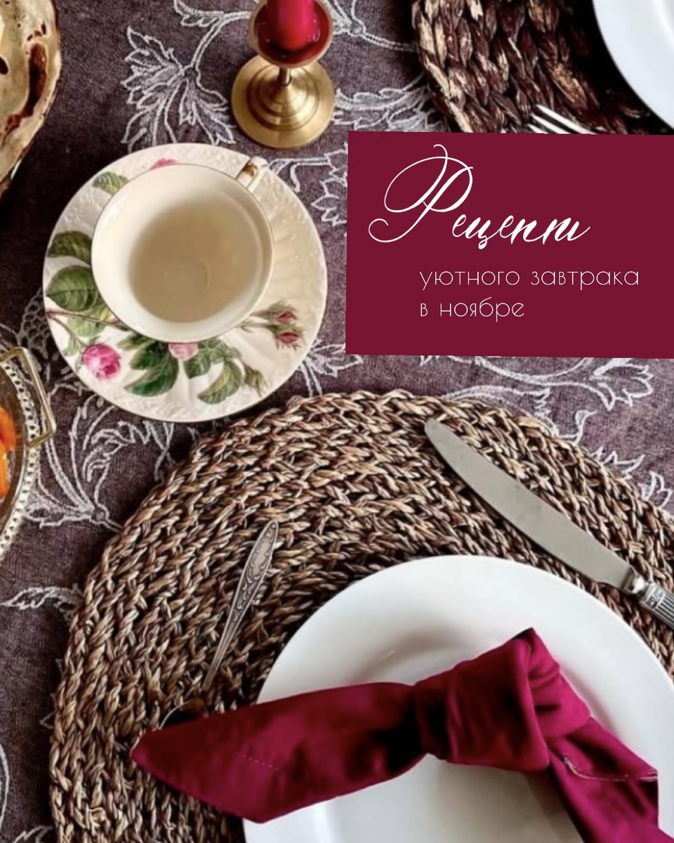 1. Согласно столовому этикету на завтрак сервируют светлые скатерти, но осенью и зимой я люблю именно темные. Не знаю почему, но с ними намного уютнее, когда на улице уже холодно. 2. Вытаскивайте из своих буфетов винтажную посуду. Вещи с историей обладают определенным шармом. 3. Приготовьте то, что вы любили в детстве. Любимая еда, например, блинчики, которые готовила мама, и теплые воспоминания согреют вас в ноябре. 4. И вновь вопреки столовому этикету зажигаю свечи на завтрак. Так приятно утром посидеть у небольшого очага. А какие у вас есть предпочтения в сервировке в холодное время года?