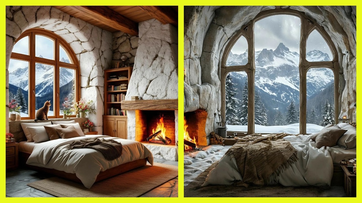 Уютная спальня в домике в горах: симфония нейросетей и горного очарования 🏔️🛌