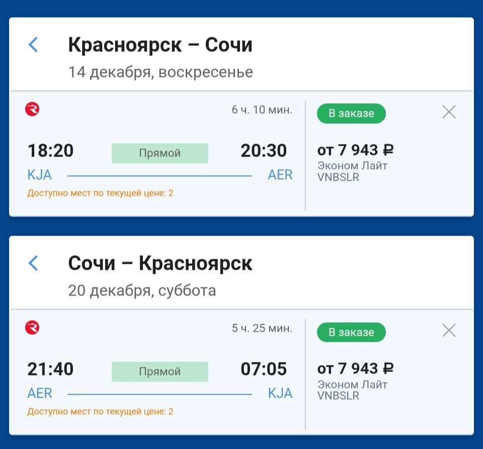 Все ещё имеются билеты в Сочи из Красноярска до 20 декабря вот таким ценам