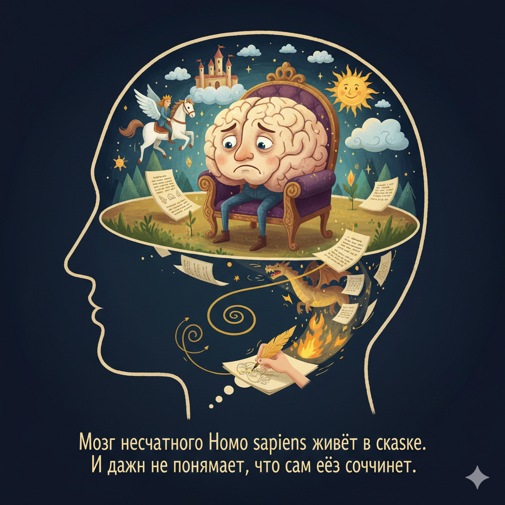 Мозг несчастного Homo sapiens живёт в сказке. И даже не понимает, что сам её сочиняет