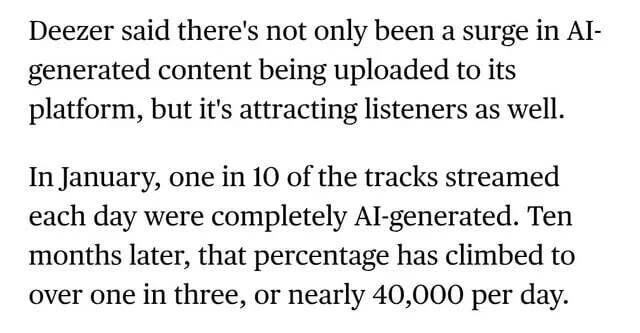 🫢В январе 1 из 10 песен, которые транслировались каждый день, были искусственными. Сейчас это 1 из 3.
